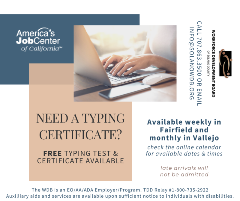 Need to take a typing test? Need a typing certificate? The WDB is happy to offer a FREE typing test and certificate! Typing tests are held at our Fairfield location […]
